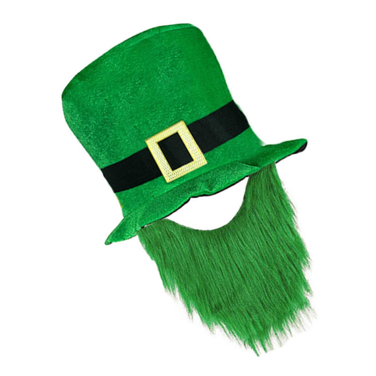 St Patrick Day Celebration Beard Hat Festival Theme Party Green Cowboy Hat ShamrockClover Top Hat Irish Accessories irish hat beard gree