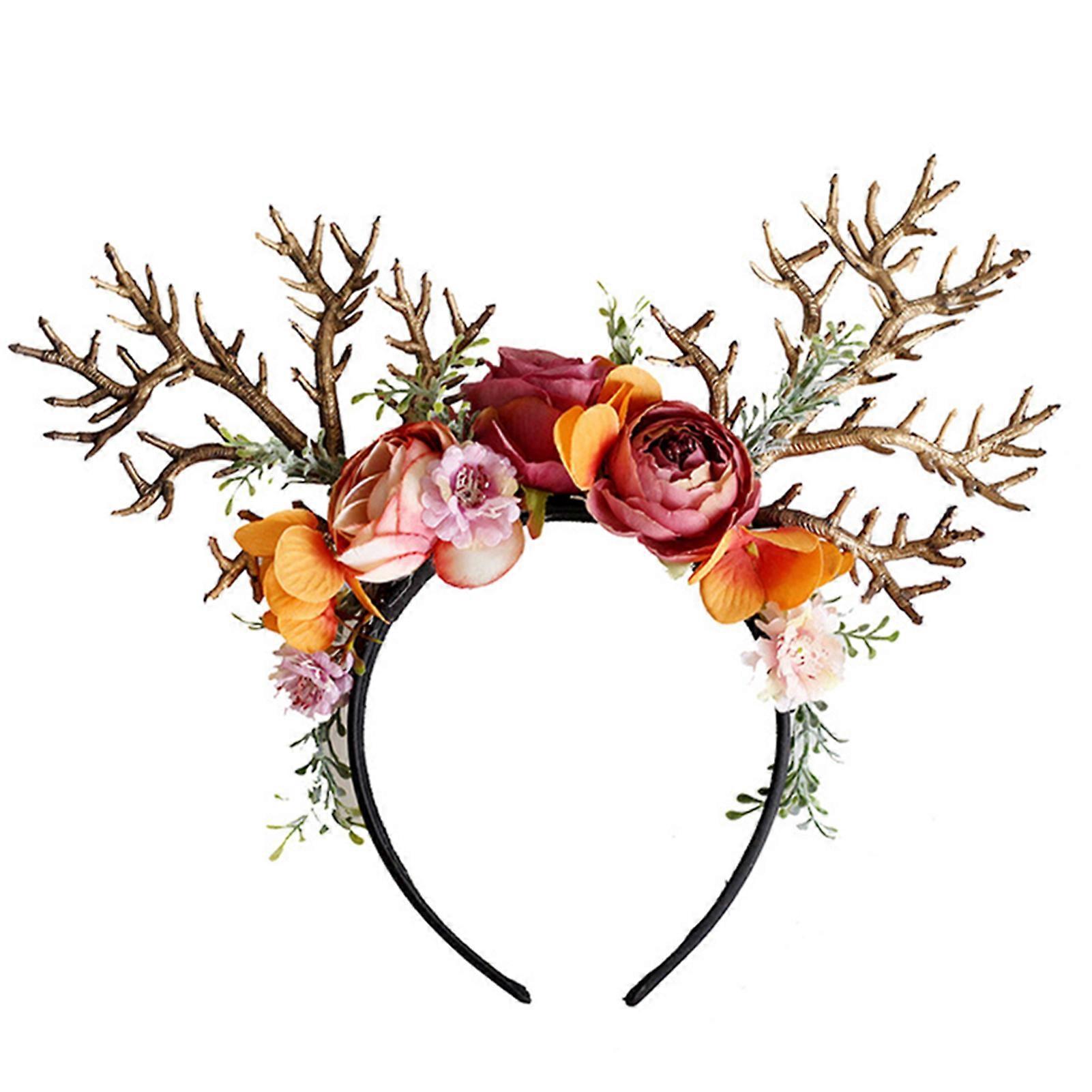 Holiday Reindeer Floral Headband for Adult Child Cute Reindeer Hand-made Hair Hoop Photography Props