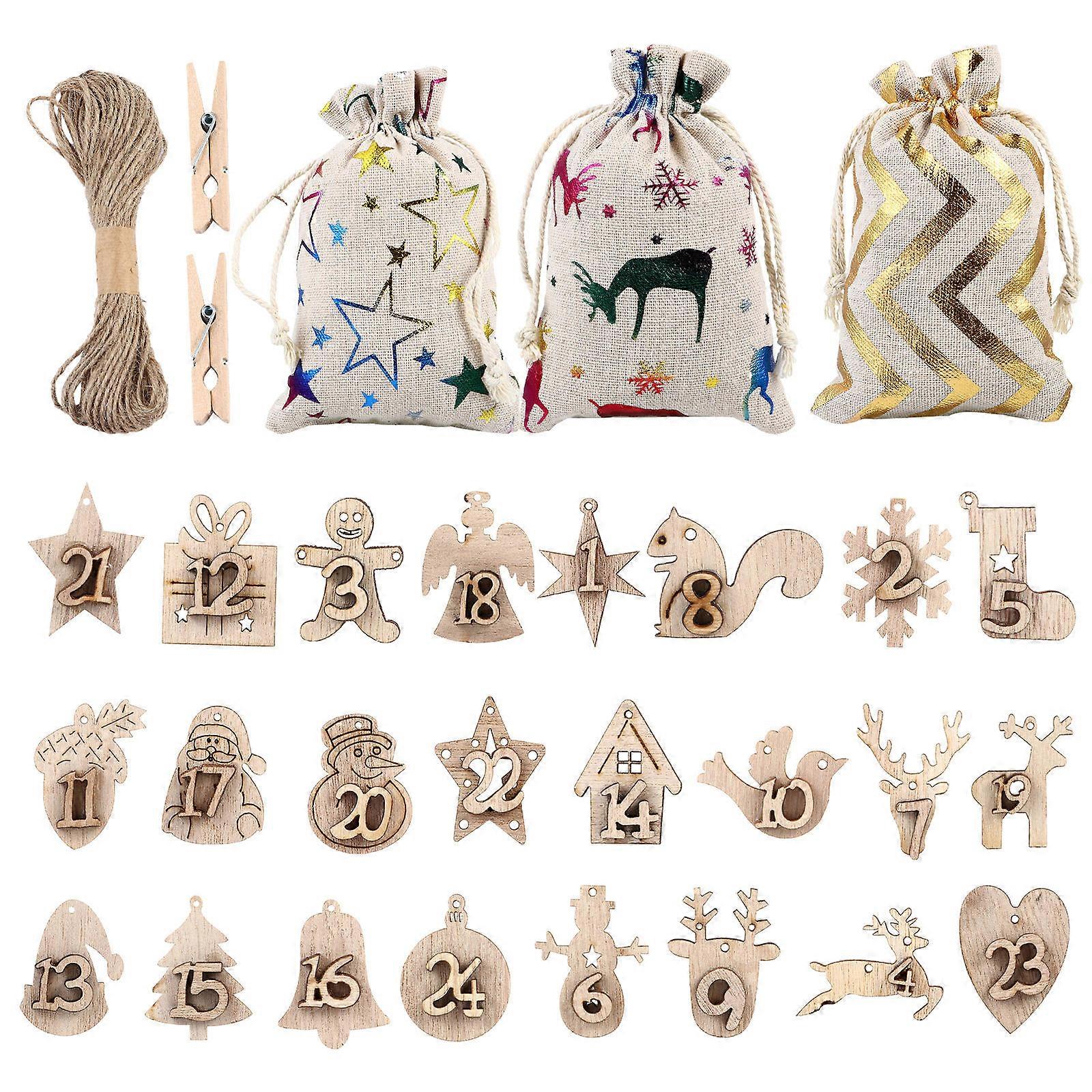 Holiday Goody Bags Cloth Material With Clips Labels Rope Christmas 24Pcs