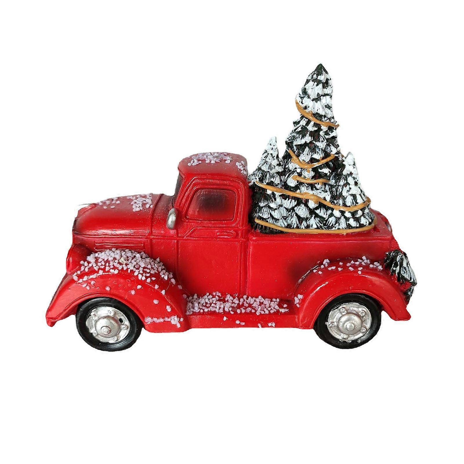 Christmas Red Farm Truck Figurine with Led Light Resin Statue Ornament Model for Home Festival Holiday Party Accessory