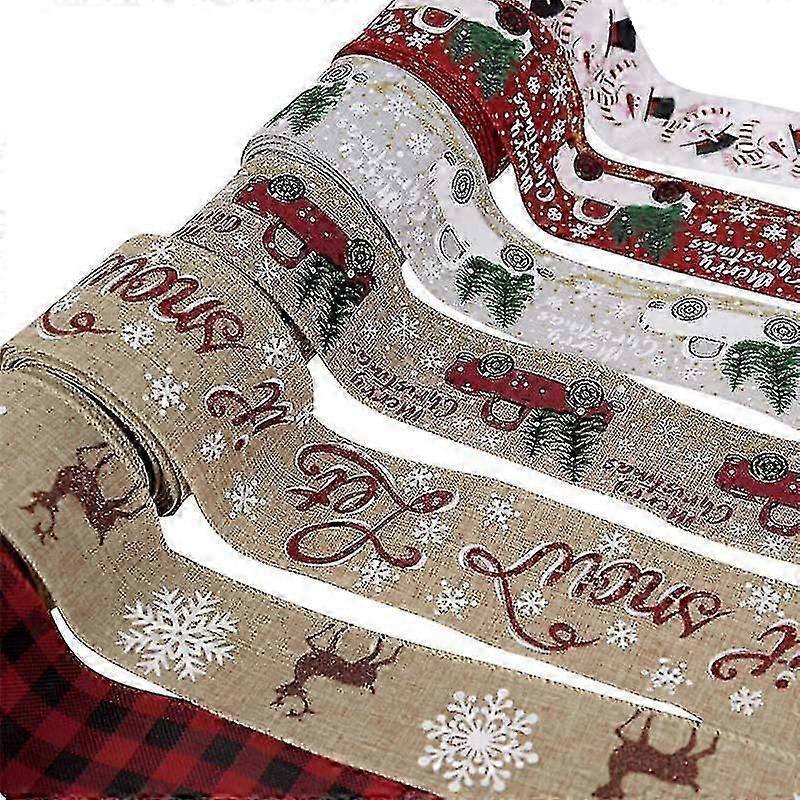 Christmas Burlap Ribbon Roll Xmas Tree Twine Streamer Ribbon Truck Red Plaid Tape For Gift Diy Bow
