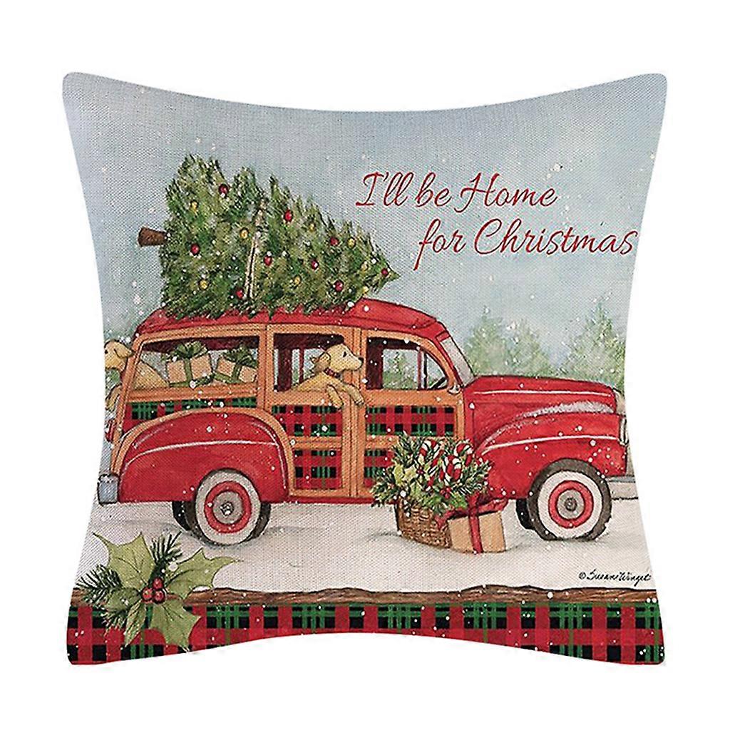 Christmas Farmhouse Linen Throw Pillow for Case Vintage Cartoon Xmas Vintage Scene Patterns Holiday Decorative Cushion Cover for Sofa Couch Car 5