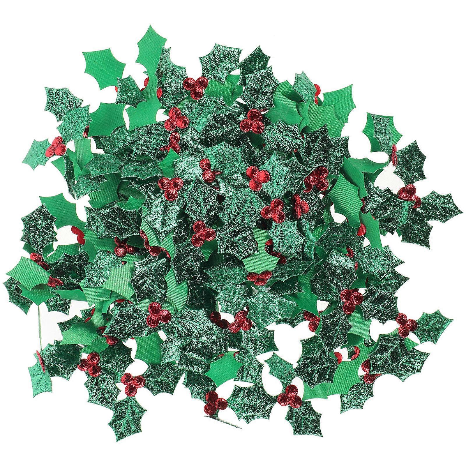 Christmas Berry Stem Flower Creative Artificial Green Leaf Pick for Costume Decoration Home Decor 5CM 100Pack