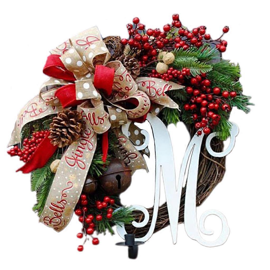 Christmas Fake Red Berries Bowknot Bells Wreath with Pinecones Artifical Leaves Simulation Garland Winter Holiday Xmas Party Front Door Wall