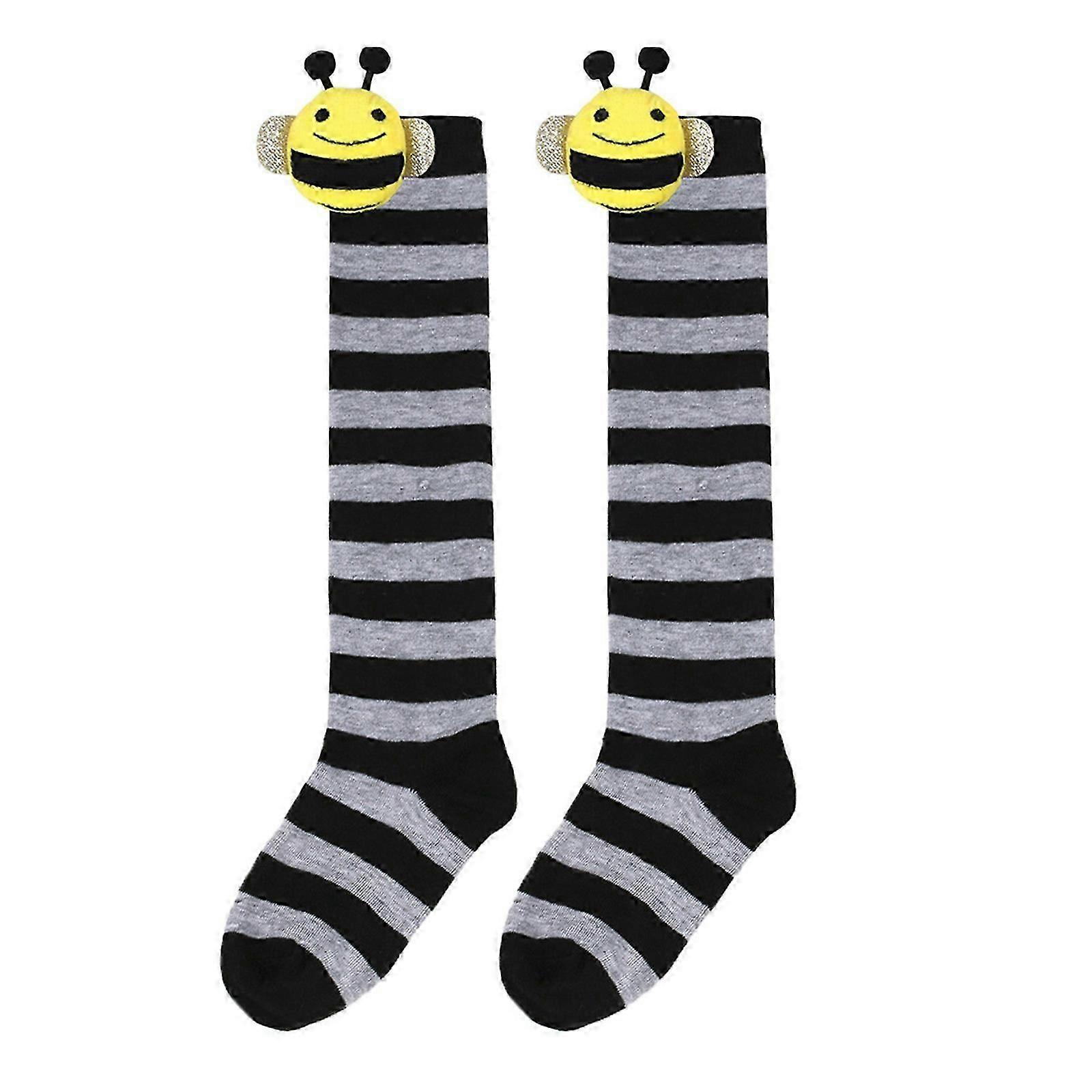 Christmas Striped Over The Knee Socks Honeybee Stockings Cartoon Thigh High Stockings Cute Cosplay Long Tube Stockings