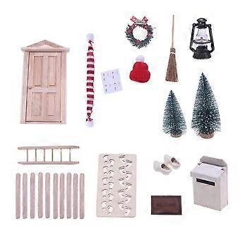 חג המולד עץ רהיטים דלת להעמיד פנים לשחק ילד משחק תפקידים מודל סט 1:12 בית בובות מיניאטורי אביזרים צעצוע חינוכי