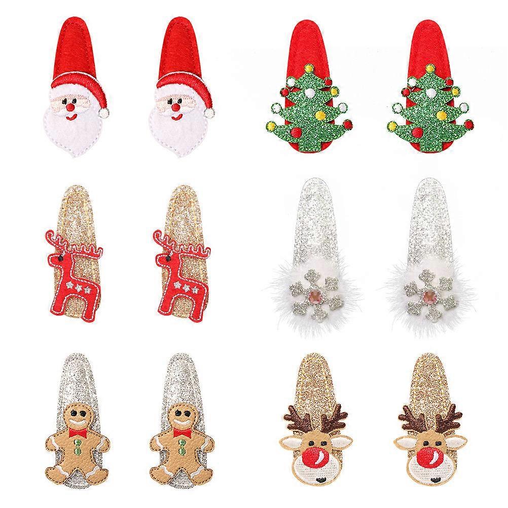 Christmas Deer Santa Clause Hair Clips 12Pcs Assorted Color For Children's Christmas Costume Festive Decoration