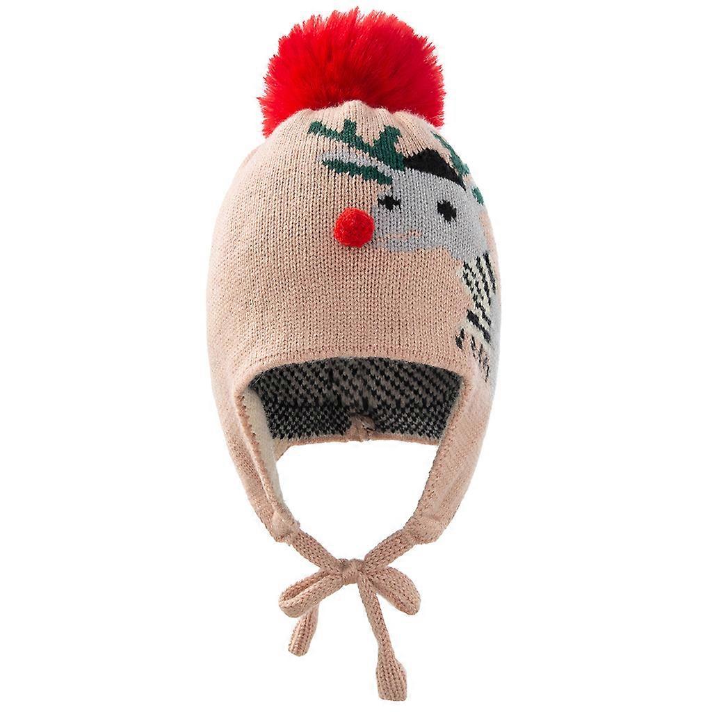 Xmas Cartoon Deer Jacquard Hat Crochet Beanie Caps Knitted Hat Wild Personality Ear Protect Outdoor Trend for Girl Boy Pink