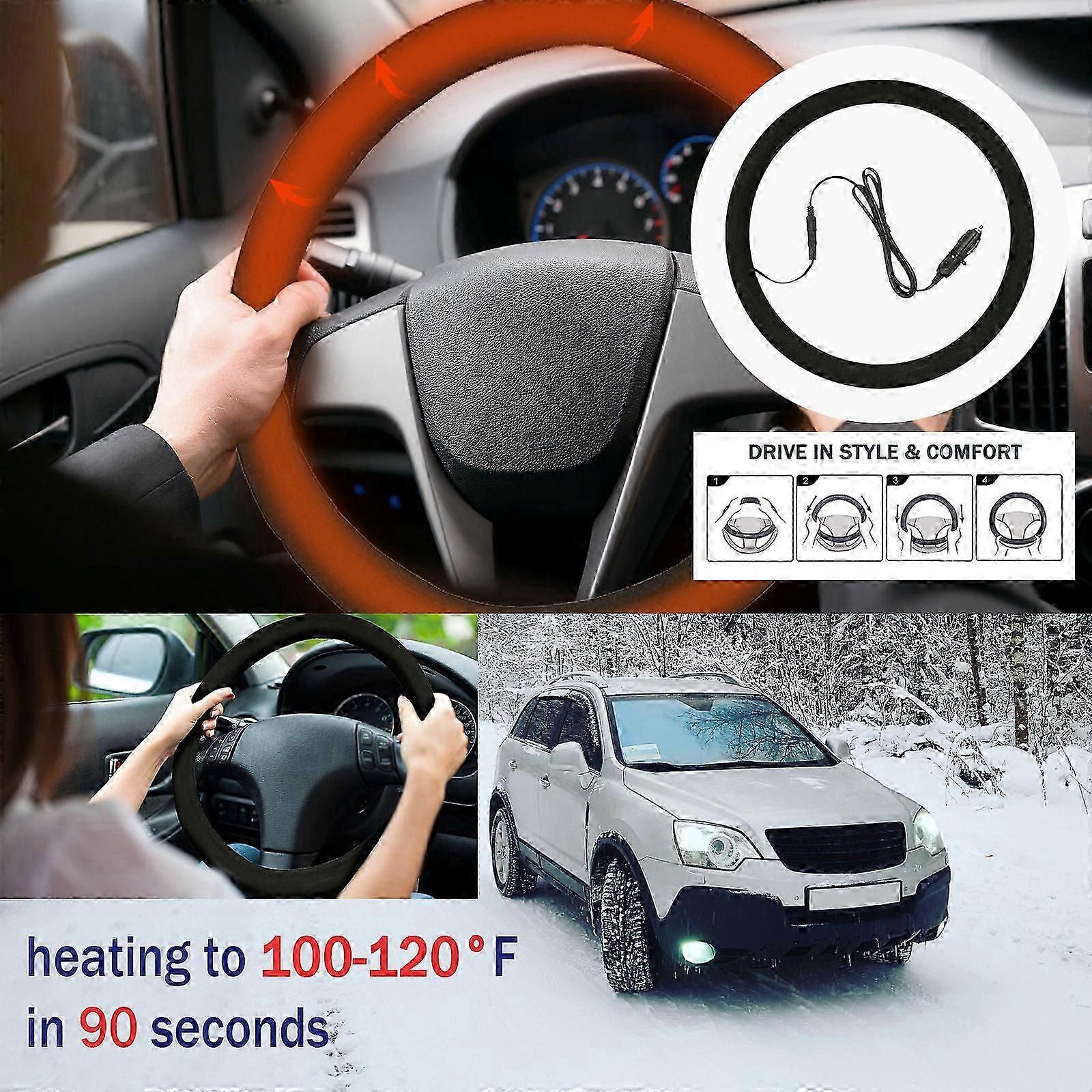 Christmas 12-volt Gray 15-inch Heated Steering Wheel Cover Suitable For Warm Winter