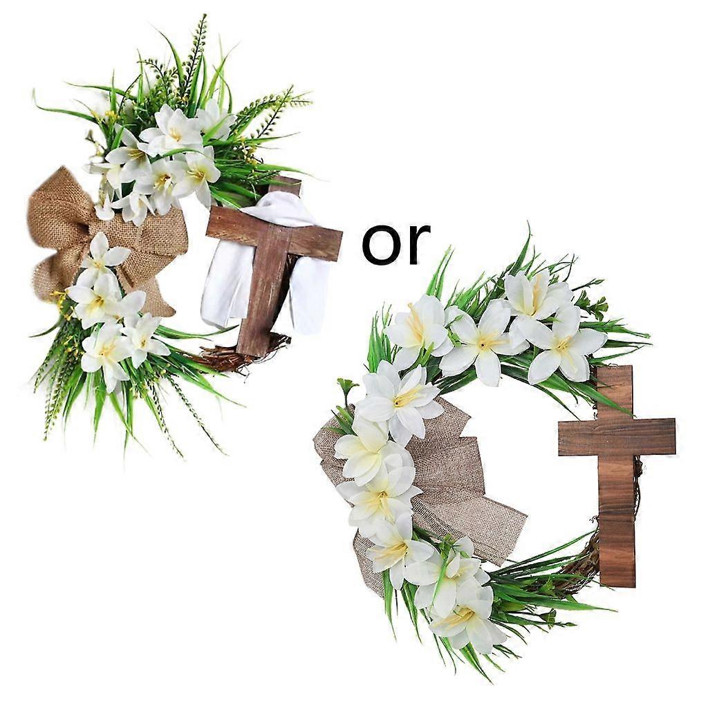 Easter for Cross Wreath with Bow Rattan Ring Garland Hanging Ornament for Home Front Door Wall Garden Decoration Art Gift Supplies