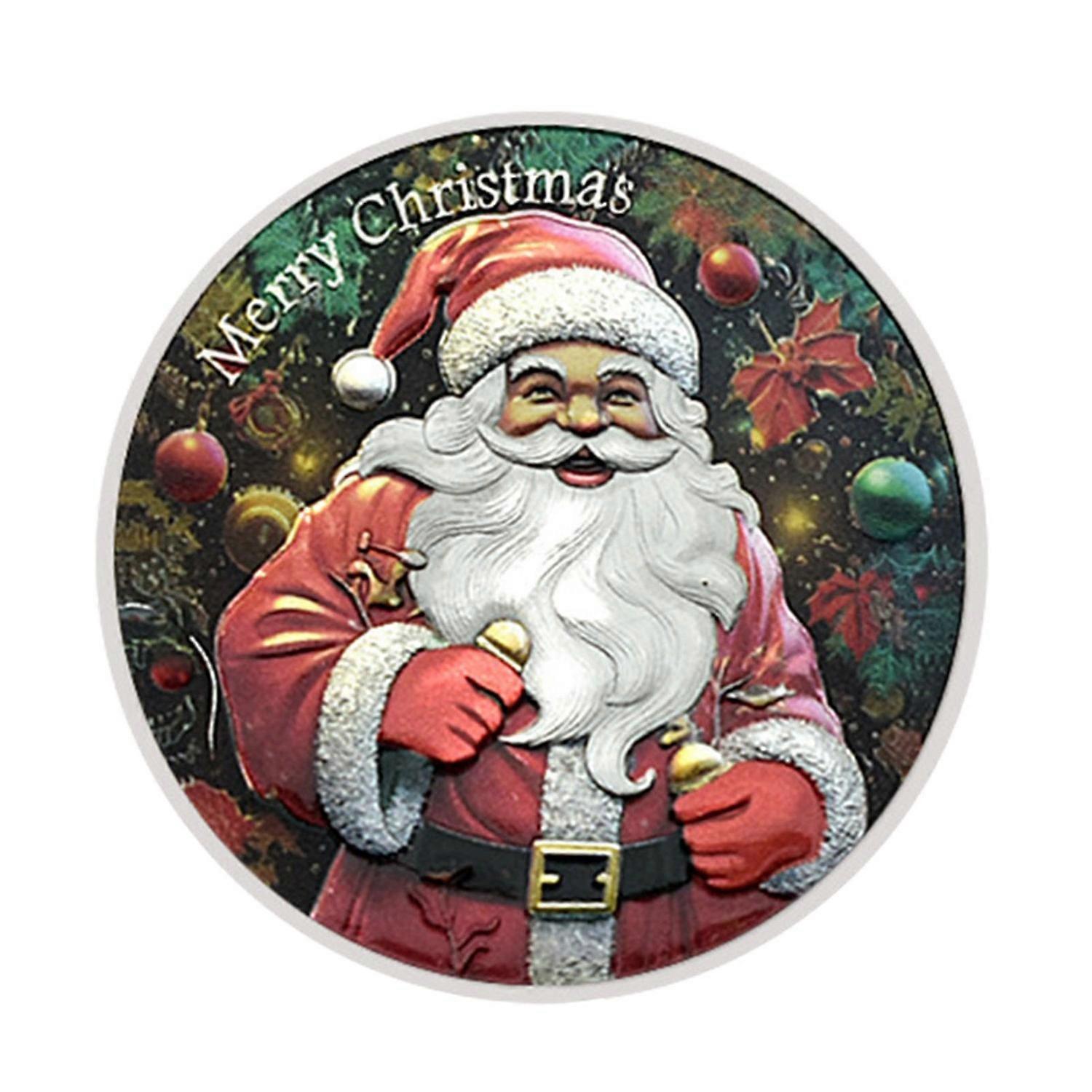 Merry Christmas Santa Claus Coin Double-sided Carved Metal Commemorative Medal Medallion Round