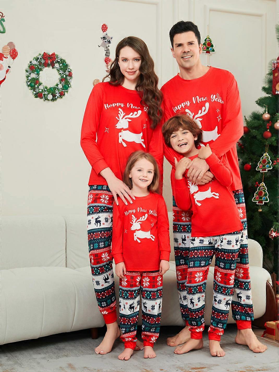 Merry Christmas Cartoon Pattern Mom Dad Kids Matching Pajamas Set 2 Pieces Suit Baby Romper Soft Loose Xmas Family Look Pyjamas