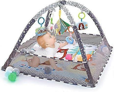 Baby Play Gym, Activity Play Mat Newborn Play Pit with 5 Hanging Toys, Lightweight Foam Stand Washable Soft Cotton Base, Infant playmat for 0-24 Month