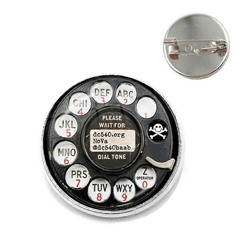 New Fashion Retro Phone Brooch Handmade Glass Dome Telephone Dial Classic Jewelry Round Accessories for Woman Men Gift