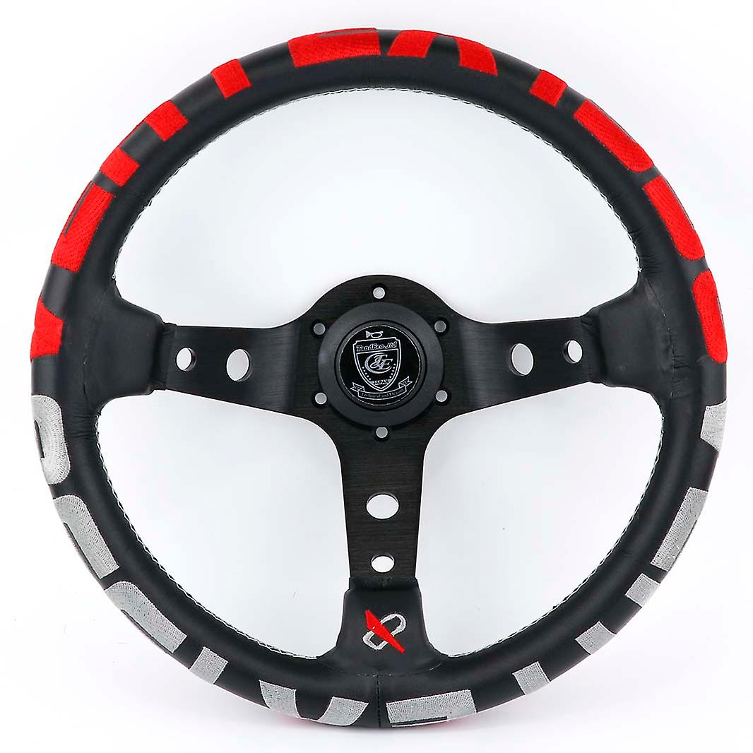 New Top Style 13 inch Genuine Leather Embroidery Drift Sport Steering Wheel~10995