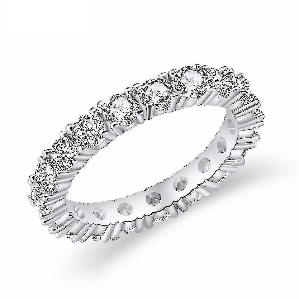 New Trendy Single Row Round silver color aesthetic Eternity Band Ring For Girl Valentine's Day Gift Jewelry R5627