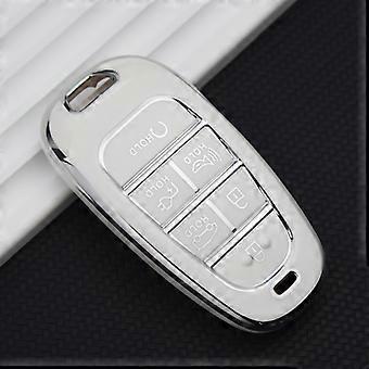 New Silver Edges Car Key Case Cover For Hyundai Santa Fe Tucson 2022 NEXO NX4 Ioniq 5 Atos Prime Solaris 2021 Car Accessories~02984
