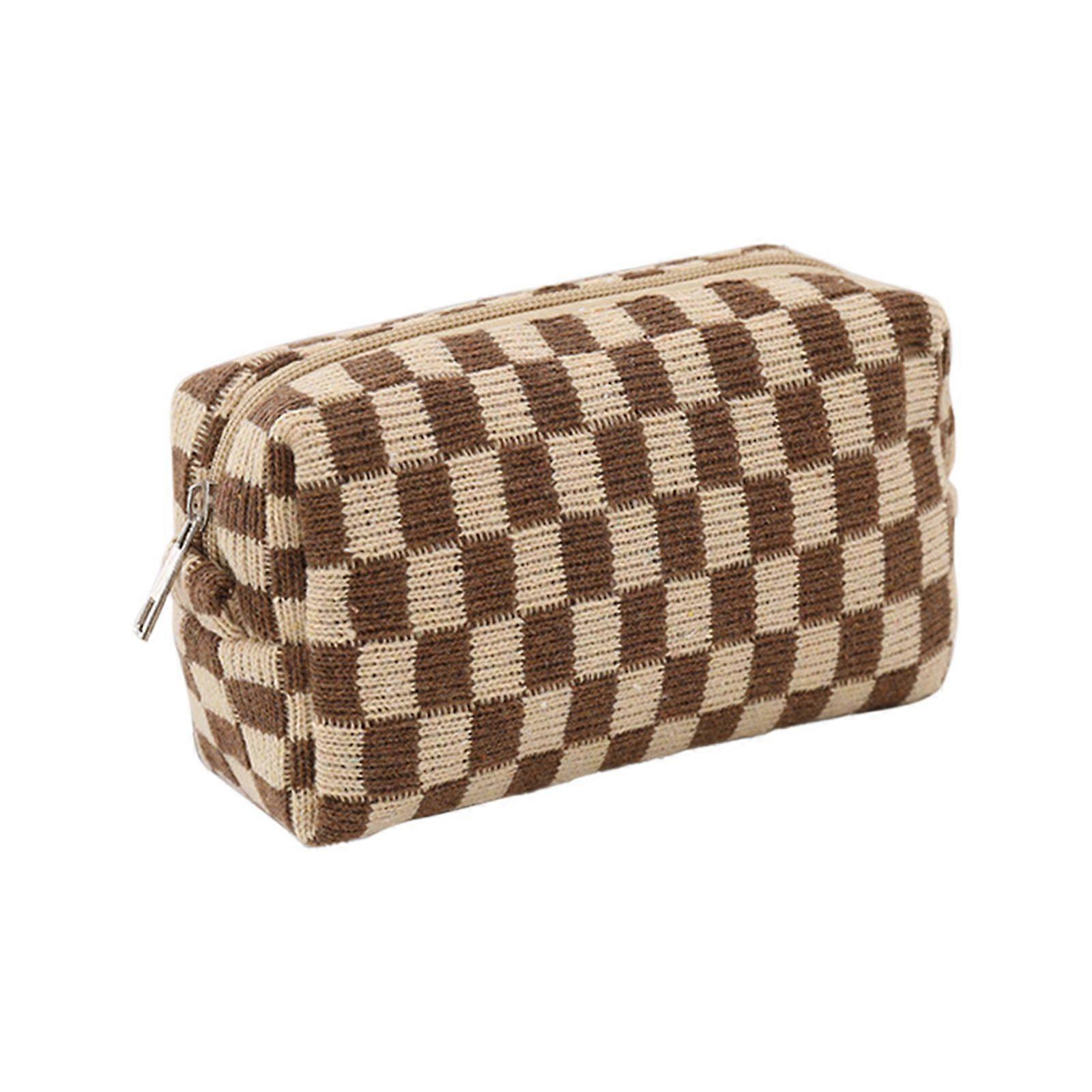 Brand New,Checkerboard Pencil Case Cosmetic Bag Desk Accessories Multicolor Knitting Checkerboard Wool Checkered Storage Products,Fast Shipping