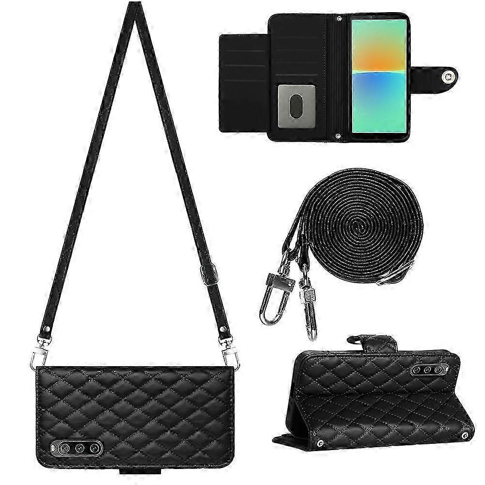 (New) Rhombic Texture Flip Leather Phone Case with Long Lanyard 2025