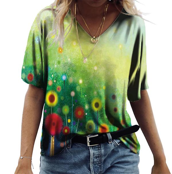 New Women's V-neck Fashion Brand Top 3d Watercolor Print Short Sleeve Street Sports Loose T-shirt