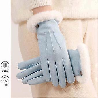 New autumn and winter suede fleece-lined fashionable ladies' warm gloves with velvet and thick touch screen cycling cold-proof gloves