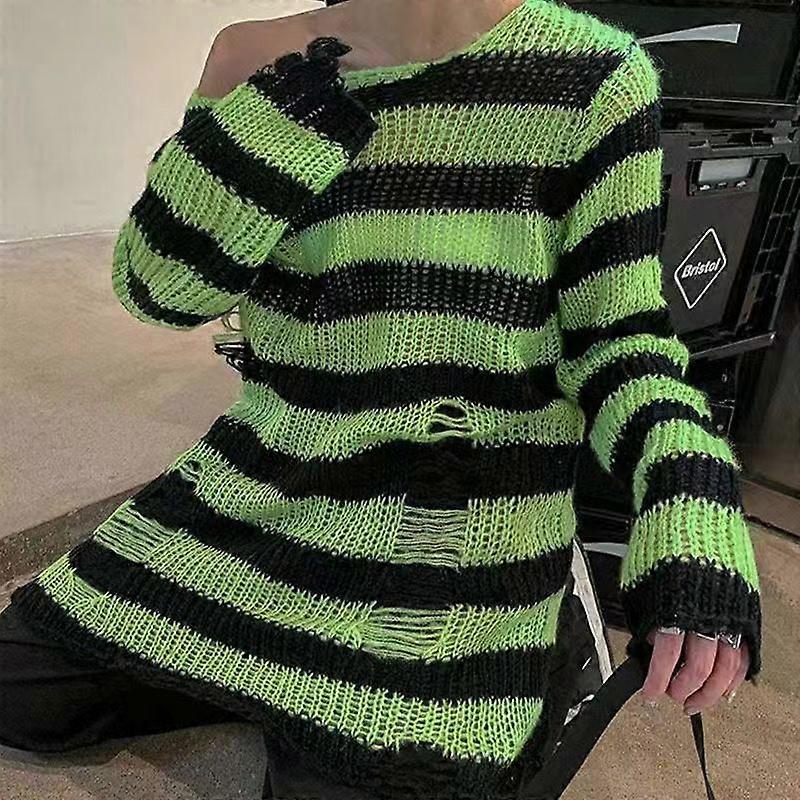 New Punk Gothic Long Unisex Sweater Summer Women Striped Cool Hollow Out Hole Broken Jumper Loose Rock Thin Dark Streetwear Top