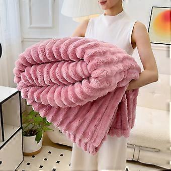 New Striped Coral Velvet Office Nap Shawl Air Conditioning Small Blanket Keep Warm Thickened Flannel Blanket Sofa Cover Blanket