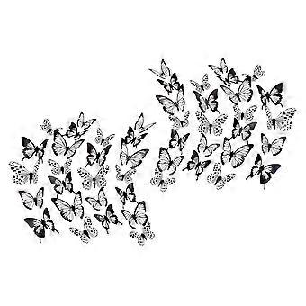 חדש 3D קישוט קיר תלת מימד נדבק לבד מקרר דקורטיבי יצירתי שחור לבן 48pcs 3d פרפרים