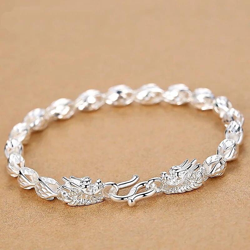 New 925 Silver Bracelet Men Chinese Style Personality Domineering Retro Dragon Bracelet Jewelry Gift