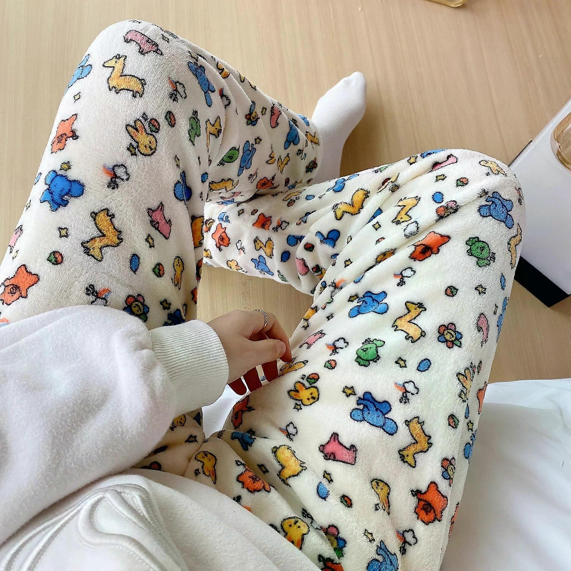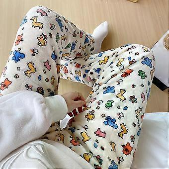 New Sanrio Cartoon HelloKitty Flannel Sleeping Pants Women Autumn and Winter Coral Fleece Thickening and Warm Casual Home Pants