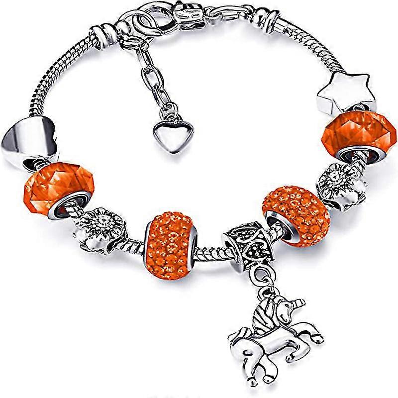 Colorful sparkly crystal unicorn bracelet: colorful rhinestone crystal unicorn and silver unicorn charm bracelet, gorgeous gift for girls or ladies, fits with your daily outfits, stand out with your charm Package includes: a colorful rhinestone silver unicorn pendant charm, 2 pieces double-color gradient beads, 2 pieces rhinestone flower charms, 2 pieces faux pink crystal beads, a rainbow charm, a silver rhinestone heart charm, a 14 cm/ 5.5 inches silver plated charm bracelet Adjustable unicorn bracelet: 14 cm/ 5.5 inches adjustable silver plated charm bracelet, fit most girls size, additional 5 cm/ 2 inches heart extension chain to allow for flexible fitting Fits most occasions: the great gift solution for a girl's birthday, girls Christmas present, Valentine's day or other special occasions Adjustable bracelet: compatible with most leading brands of world snake chain charm bracelets, charms and beads can easily be added, removed or replaced when screwing off the bracelet end capProducts from LUOLV's store