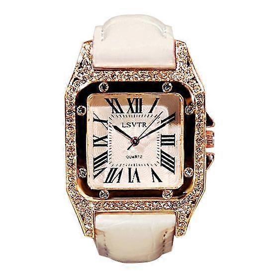 Dial Roman Numbers Strap Quartz Faux Leather Analog Wrist Watch