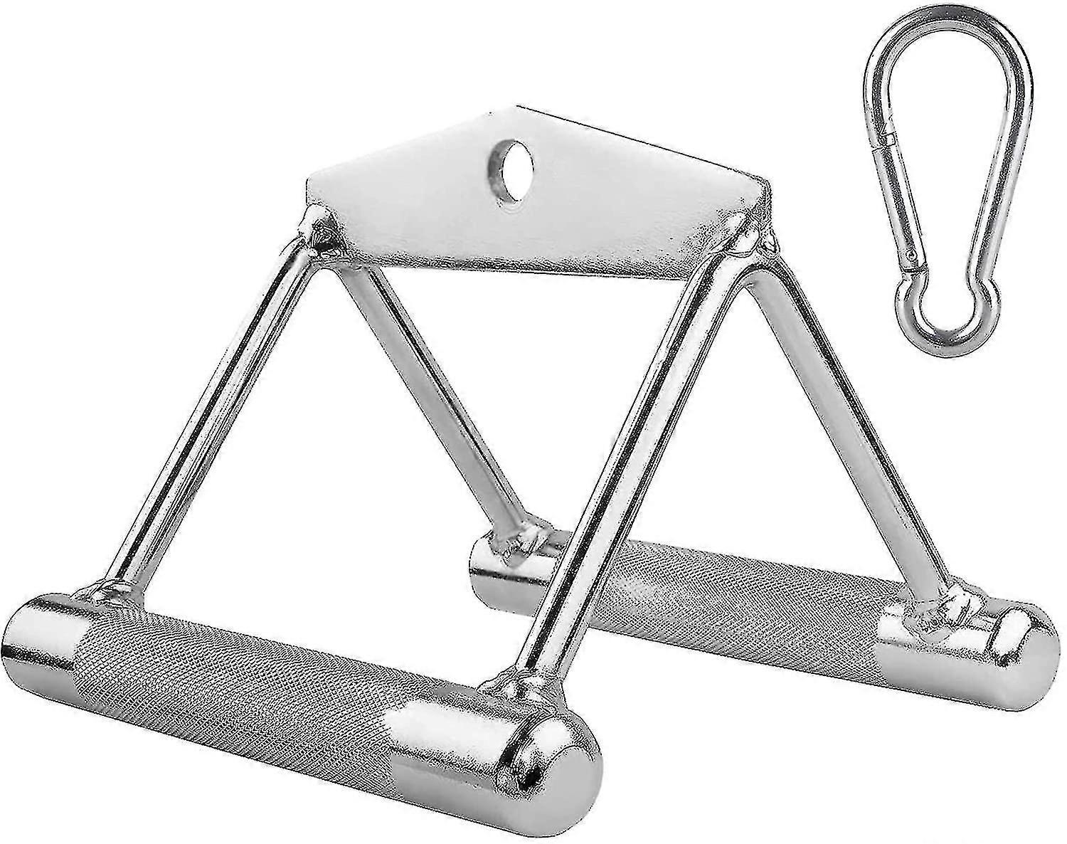 Particularities:silverMaterial: metalSize: 18 cm x 13 cm x 12 cmPacking list:1 x handleHIGH QUALITY MATERIALS: Made of high quality metal. The anti-skid handle has threads, conforms to ergonomics, to ensure stability when you hold on.Strength Training Aids: A strong round handle and a non-slip grip, makes the weight lighter without tearing or tearing your hand. It also gives you better elevator stability and control for better consistency in the gym.Universal Design: The triceps V-shaped push bar is made of high quality metal, it is more elegant and durable. Designed for all cable systems.Multi Workouts Use: Ideal for seated series exercises to develop the back, shoulders, forearms, triceps and biceps.A good helper for fitness enthusiasts: our cable pull handles are indispensable accessories for the home and gym. It can accompany you with various fitness exercises anytime anywhere. Whether at home or in the gym, you can use our parallel grip strength training to strengthen muscles and improve your body shape.