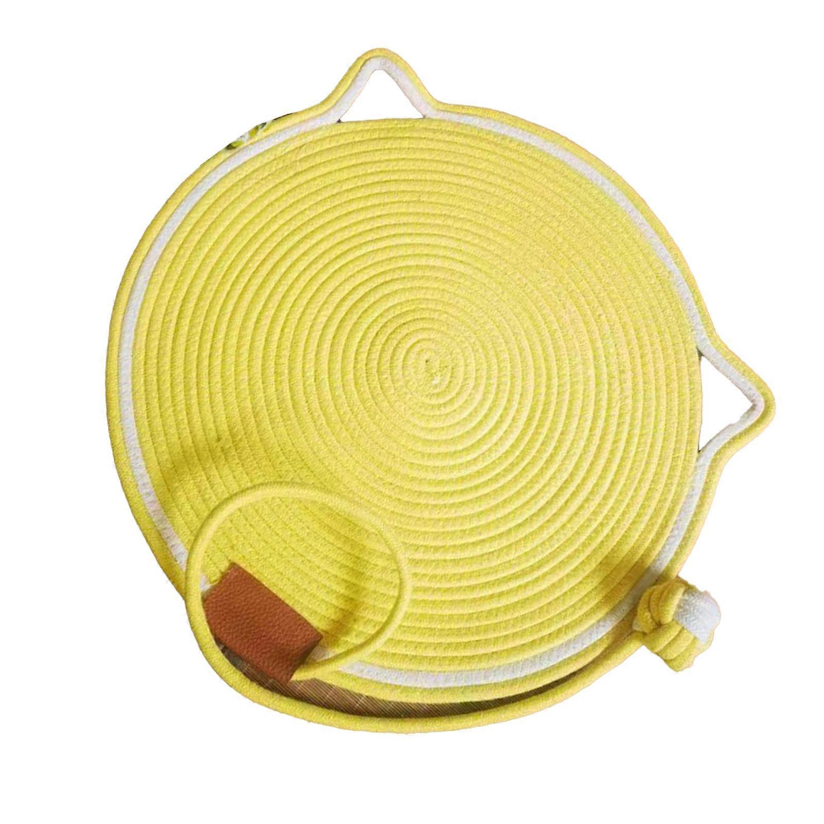 Cotton Thread Cat Mat Hand Woven Cartoon Cute Comfortable Scratch Proof Cat Scratcher Pad with Ball for Cats Kittens Yellow