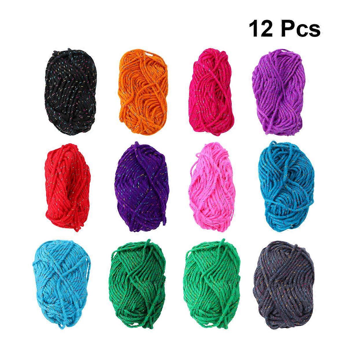 Crochet Yarn Single Strand Knitting Yarn Handcrafting Tools Assorted Color Cotton Fiber DIY 12Pcs