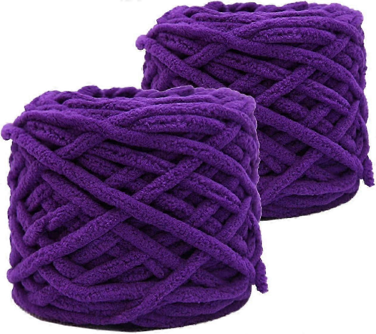 Chunky Chenille Yarn 43.74 Yards/Roll, 2 Rolls 7mm Thick Fluffy Soft Velvet Yarn for Crocheting Blankets, Clothes, DIY Crafts, Compatible with 25-26