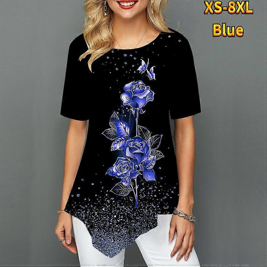Women Plus Size Ladies Tee Shirts Colored Bauhinia Print Loose Casual Tops Female Irregular Summer Clothes