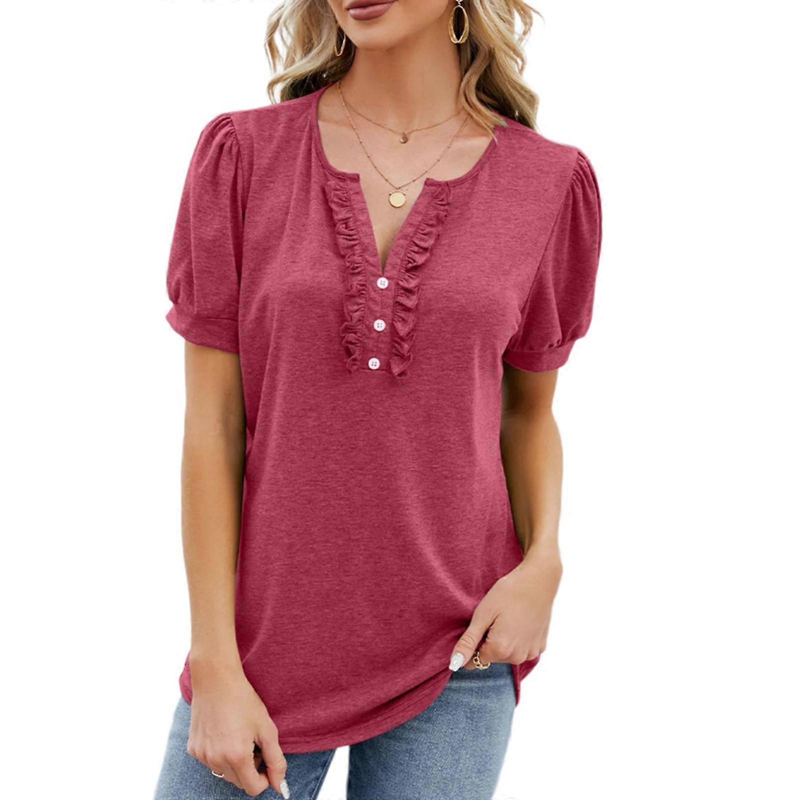 Womens Tops Fashion V Neck Button Short Sleeve Tshirts Casual Blouses Loose Shirt Suitable for School Office and Outdoor XL Burgundy
