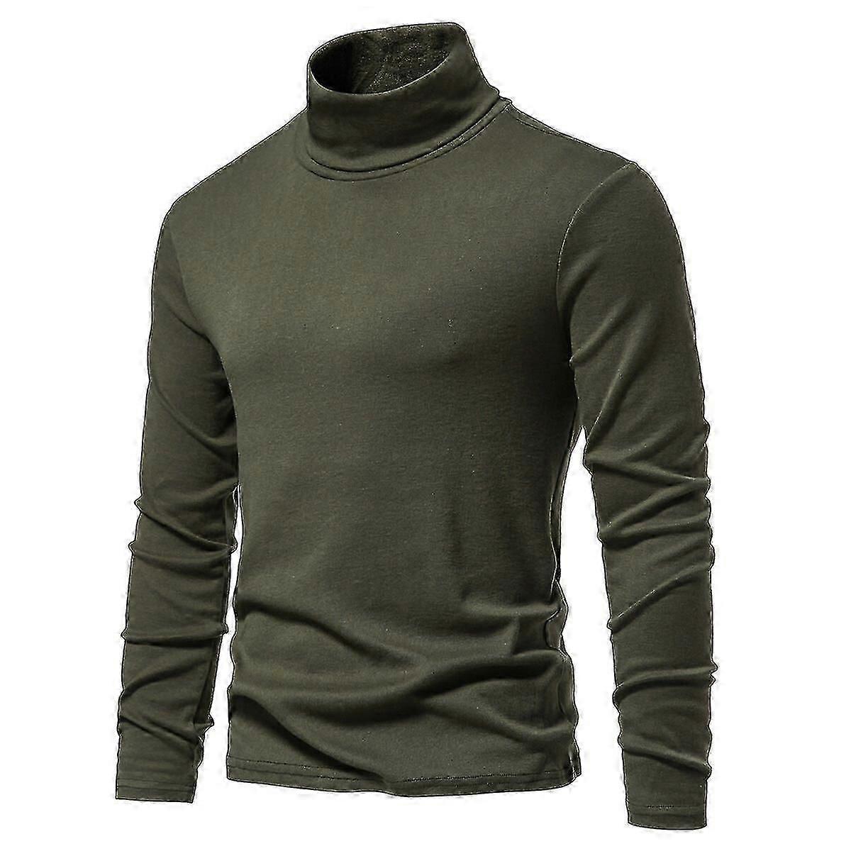 Mens Turtleneck Casual Daily Solid Color Slim Fit Pullover Shirt Hr