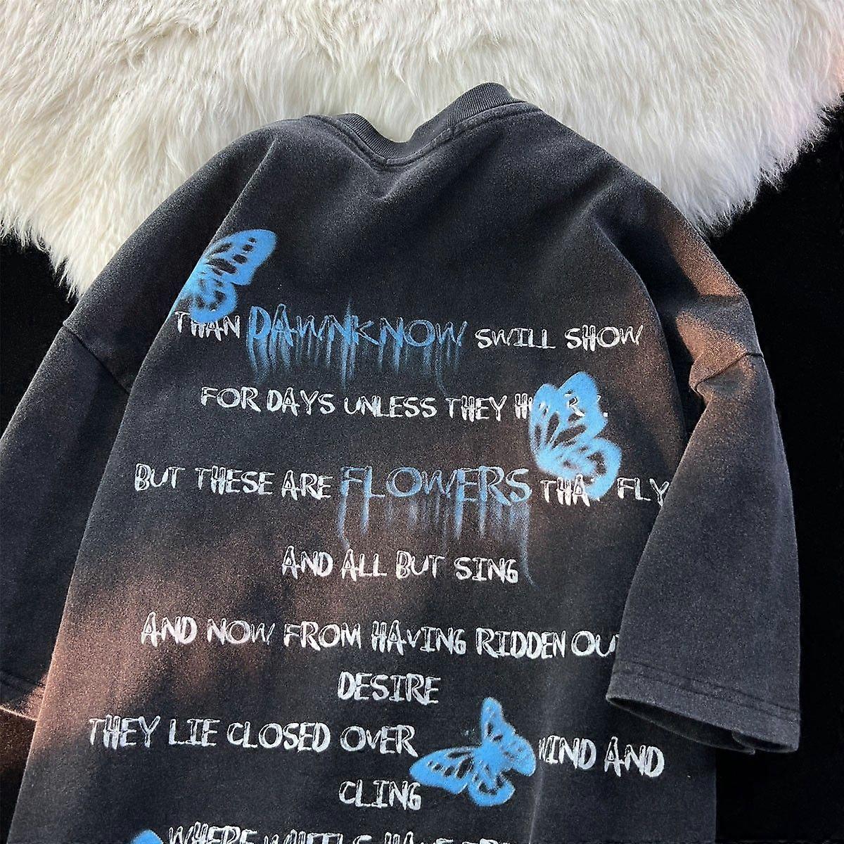 American retro washed old butterfly T-shirt men and women summer loose lazy trend brand couple dress Harajuku half-sleeved top