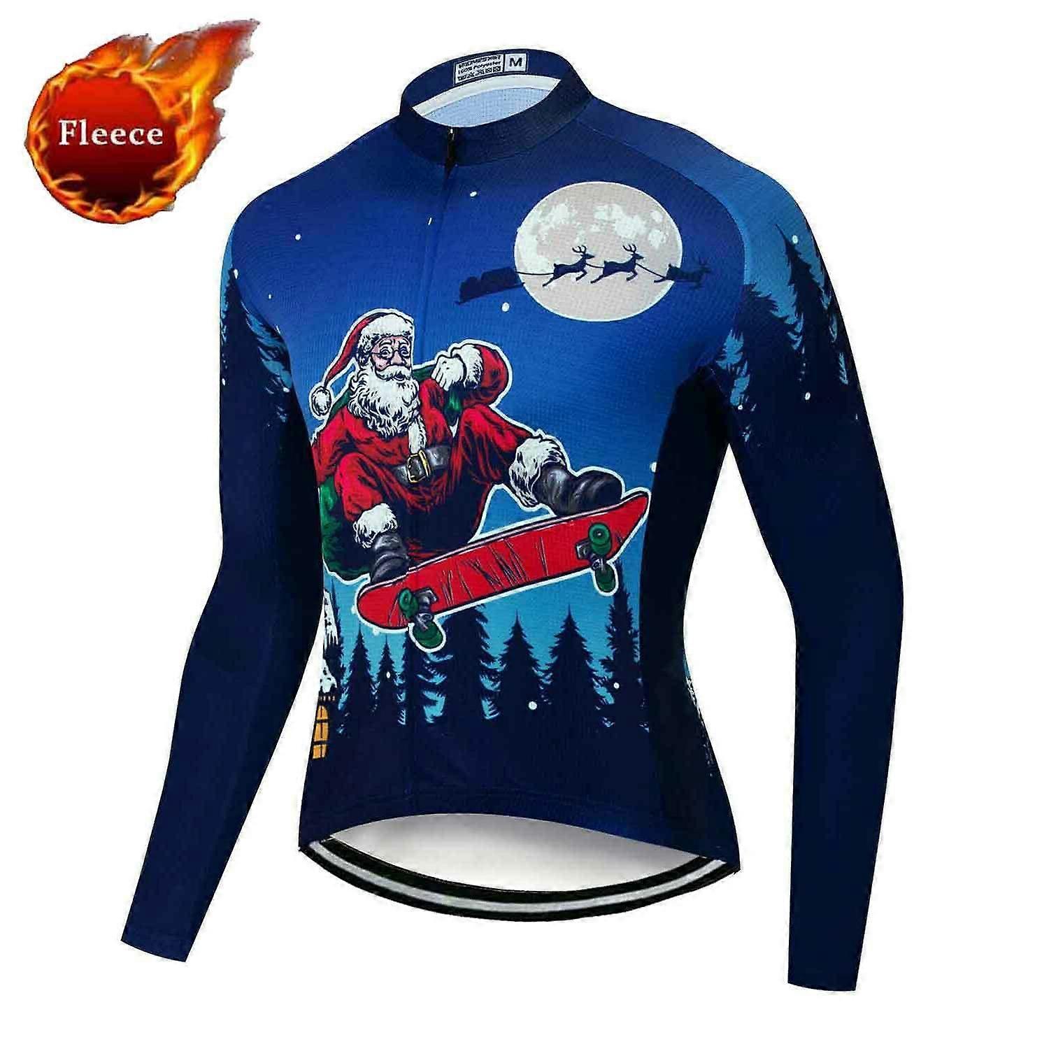 Christmas Thermal Cycling Jersey Men's Long Sleeve Winter Bike Bicycle Shirt Top