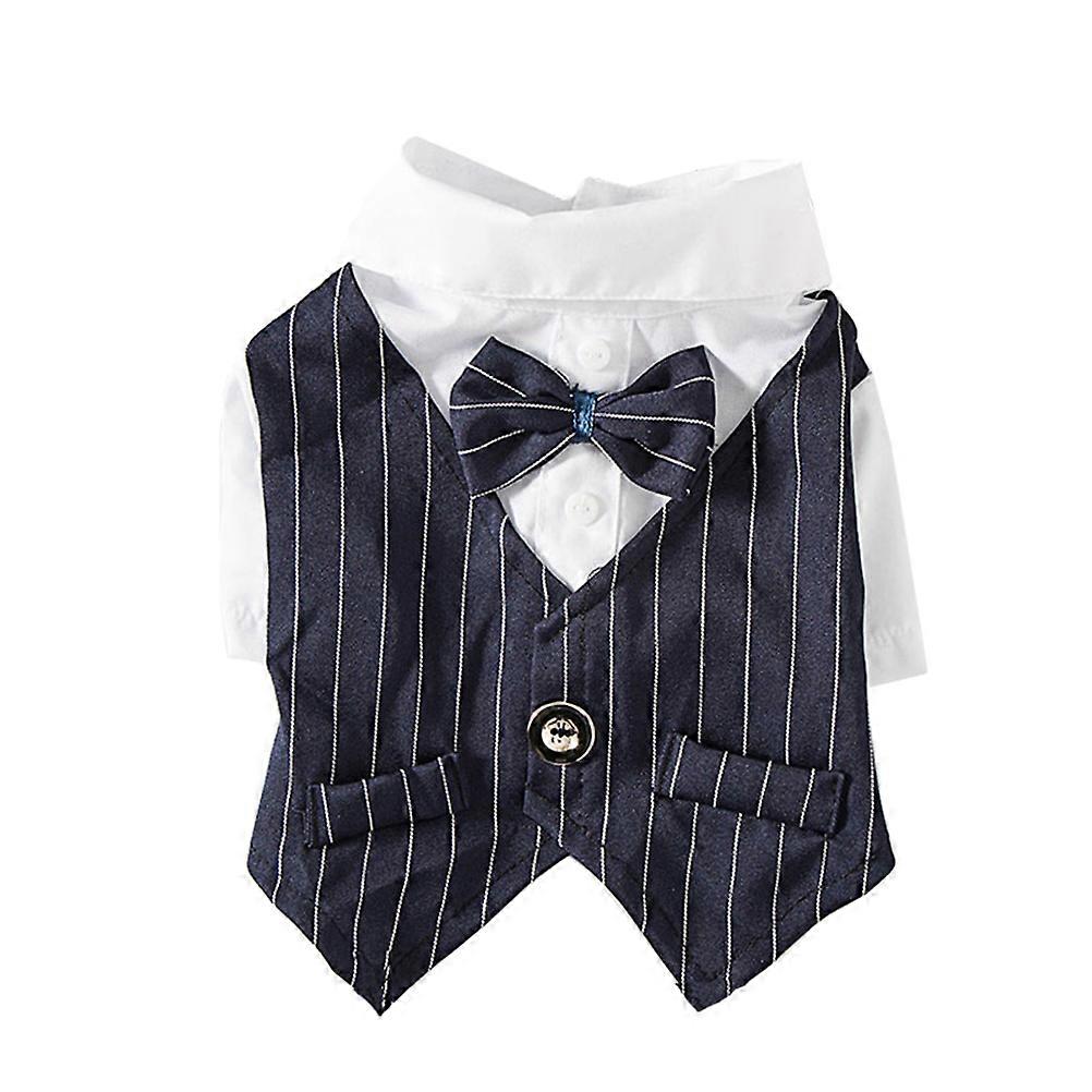 Gentleman Suit Pattern Dress Shirt For Small Dogs Comfortable Wearing in Navy 1Pack