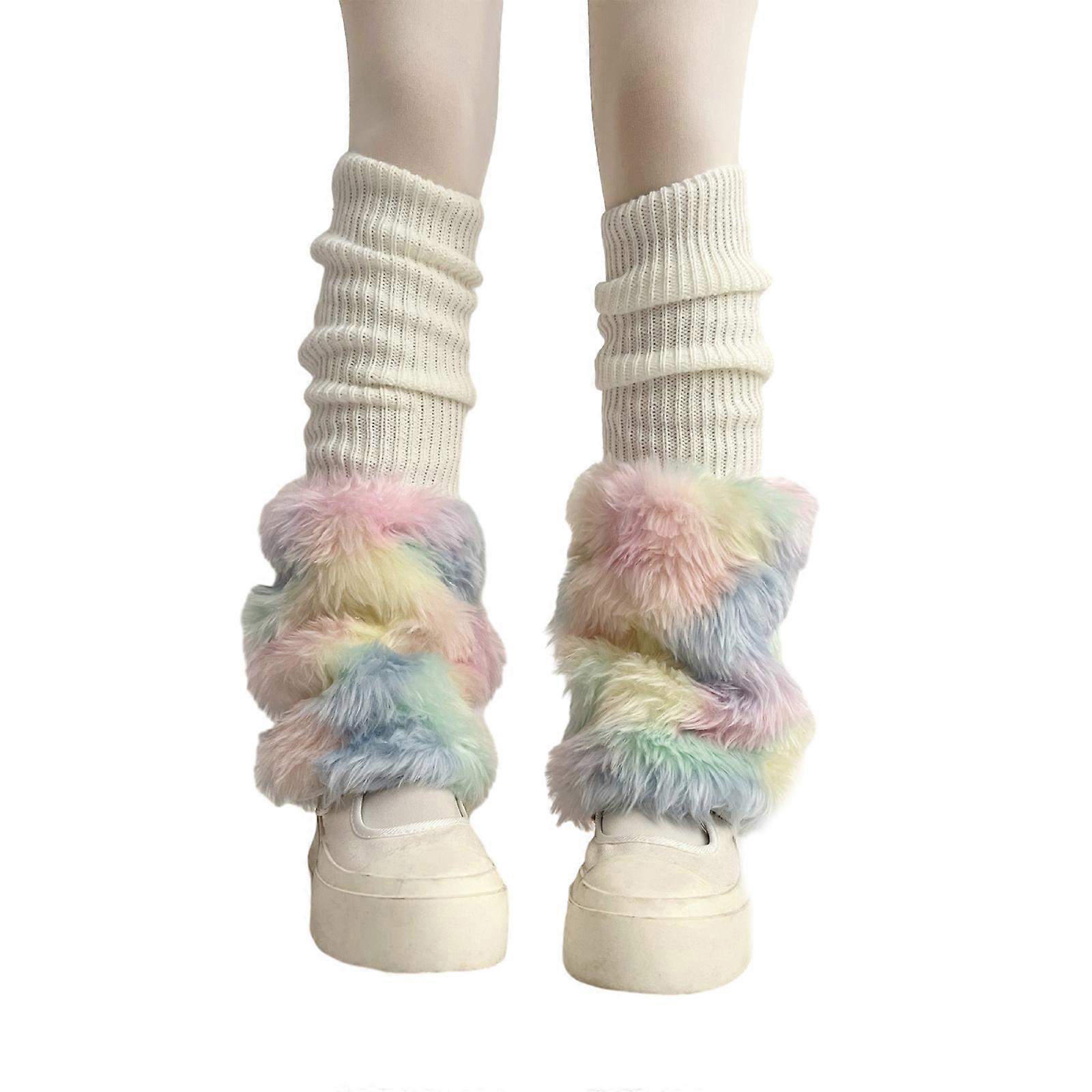 Winter Warm Faux Furs Leg Warmers Y2K Knitted Flared Leg Sleeves Plush Baggy Cuffs Ankle Heap Socks Lolitas Leg Socks Multi