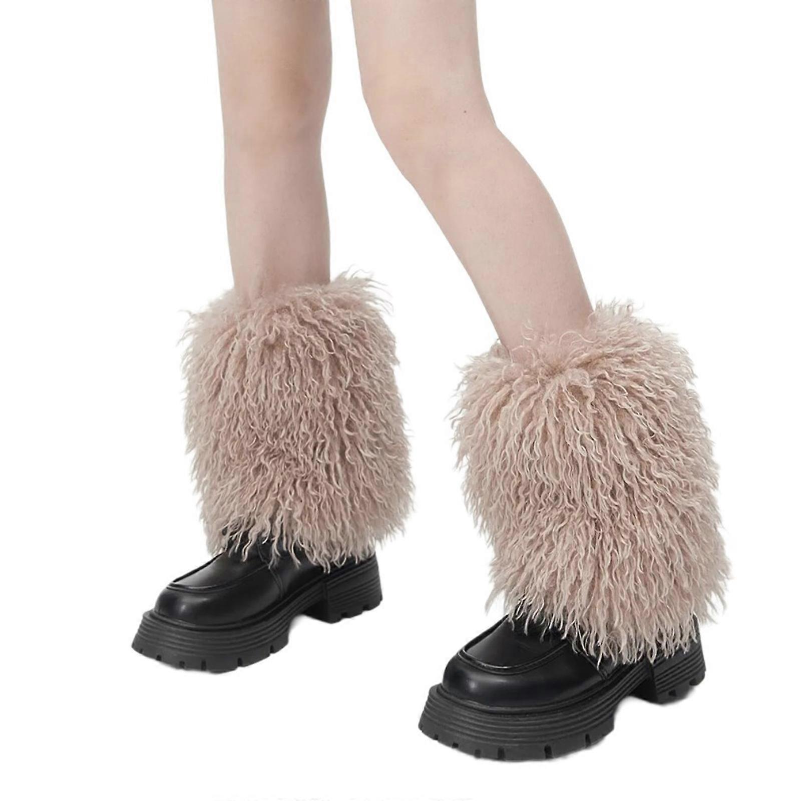 Winter Warm Furry Plush Leg Covers Solid Color Boot Toppers Long Leg Warmers for Ladies Winter Wear and Theme Parties Camel short style