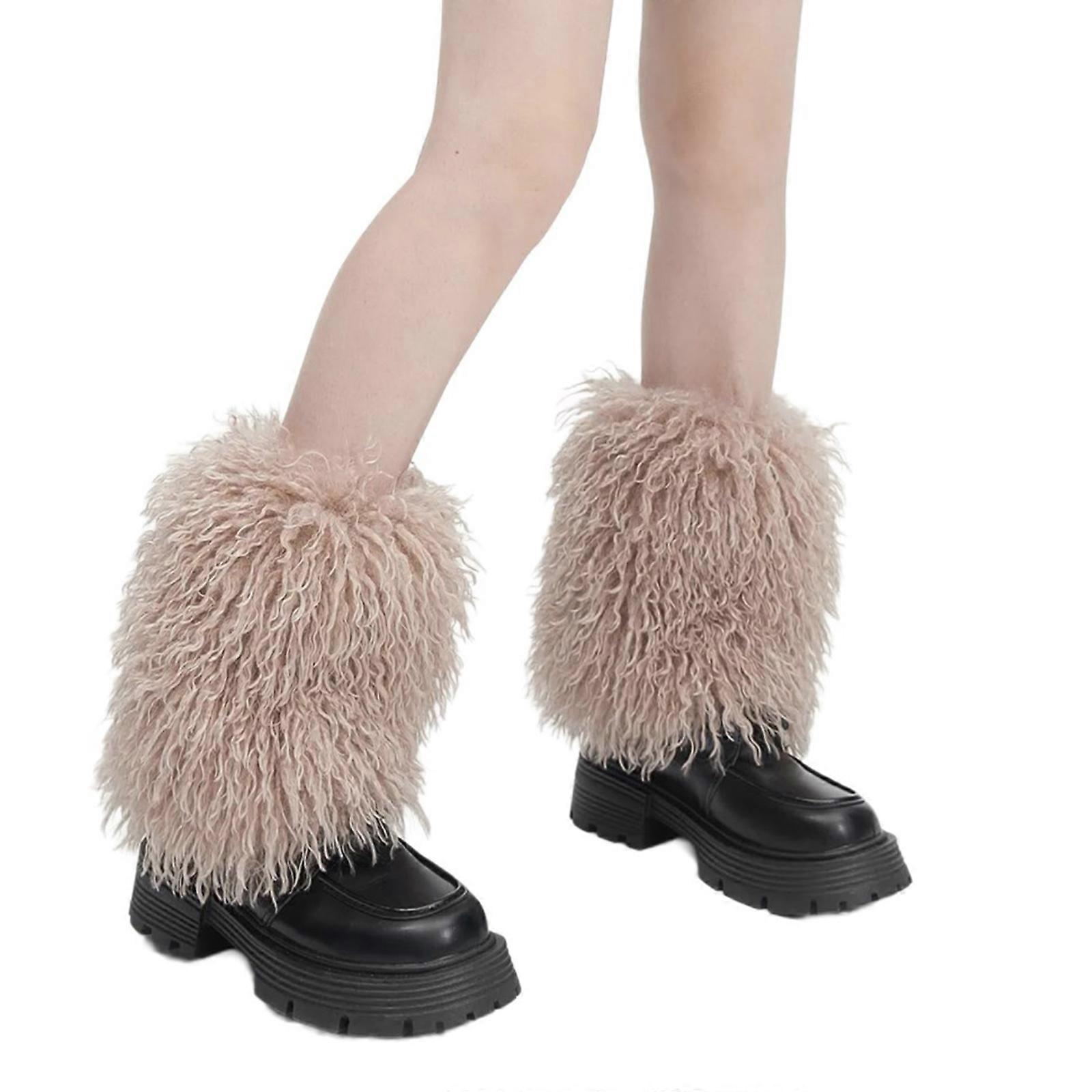 Winter Warm Furry Plush Leg Covers Solid Color Boot Toppers Long Leg Warmers for Ladies Winter Wear and Theme Parties Camel short style
