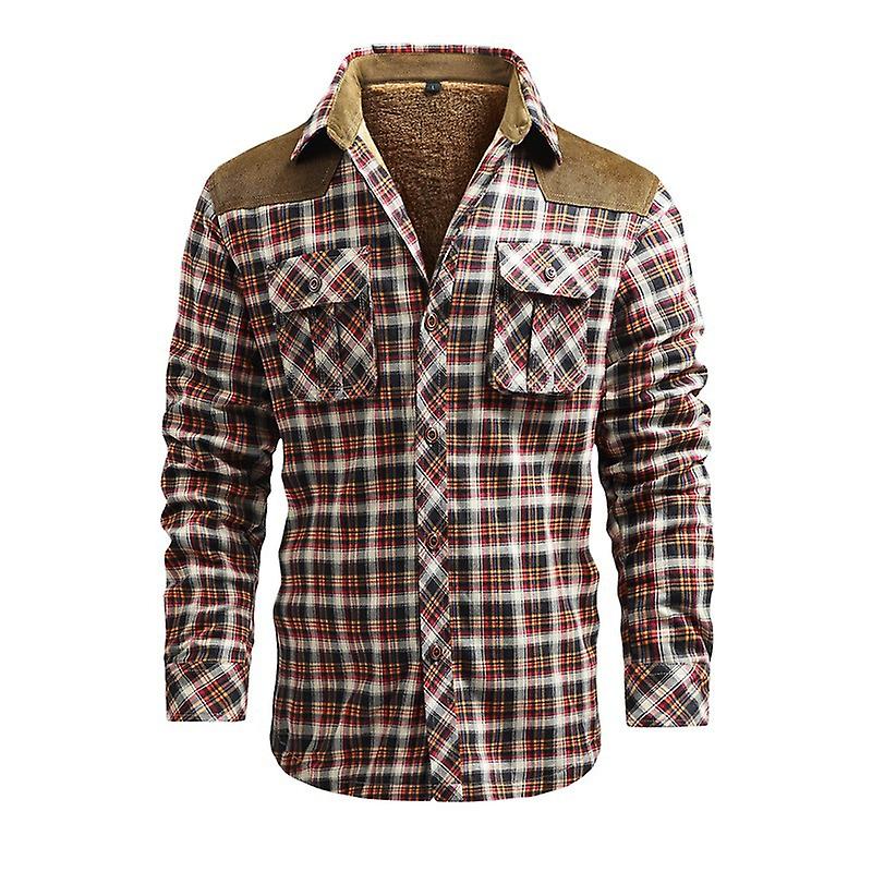 Winter Casual Plaid Velvet Thickened Warm Men Hirt Men's Cotton Loose