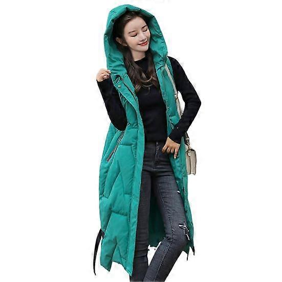 Winter Women Waistcoat Thickened Padded Zipper Closure Hooded Belt Decor Sleeveless Solid