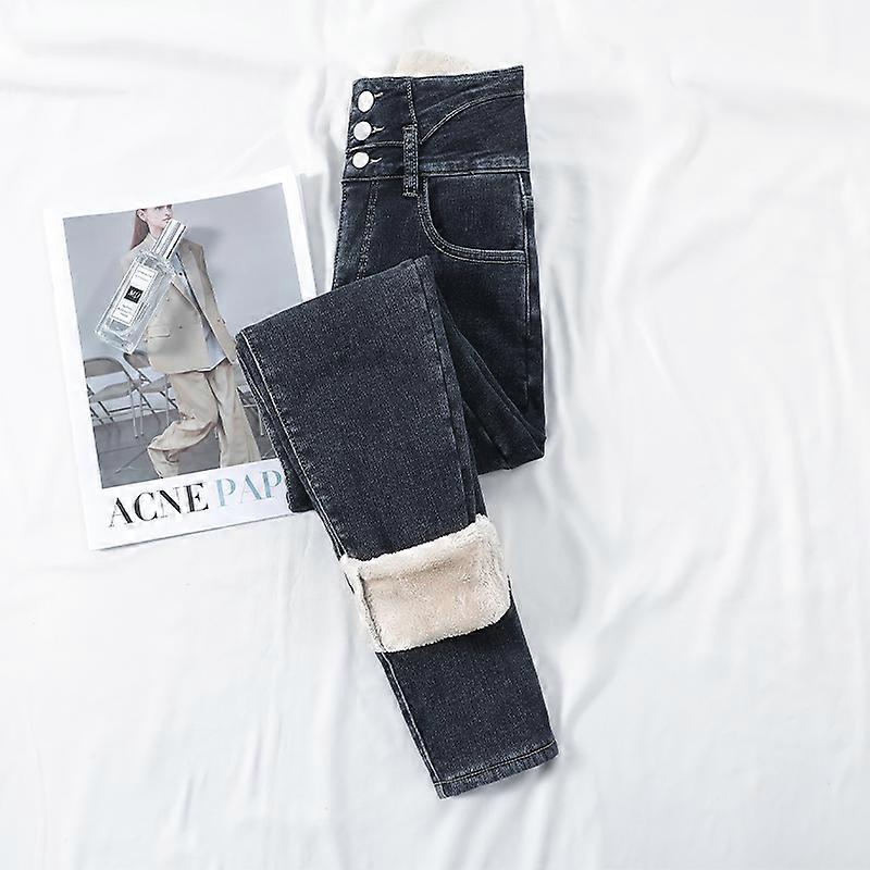 Winter Thick Velvet Women High Waist Skinny Jeans Simple Fleece Warm Slim Fit Stretch Ladies Casual Denim Pencil Pants