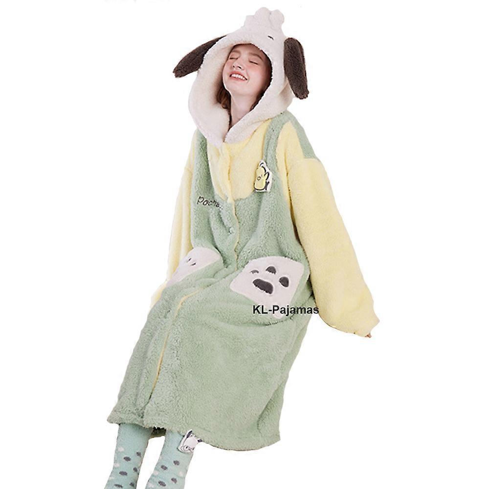 Winter Nightdress Warm Nightgown Coral Fleece Women Animal Dog Cosplay Pajamas Sleepdress Flannel Long-sleeve Home Wear Nighties