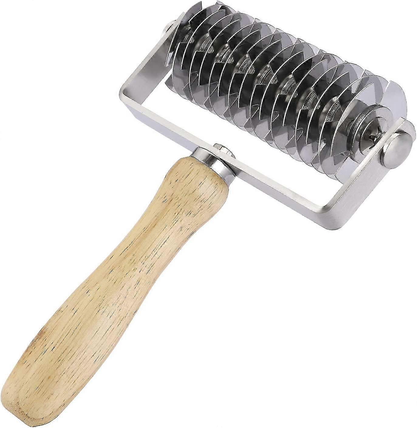 Lattice Pastry Roller Cutter, Stainless Steel Dough Roller, Wood Handle, Cookie Pie Kitchen Bakery Tool, Baking Craft Diy Baking Tool For Restaurant B